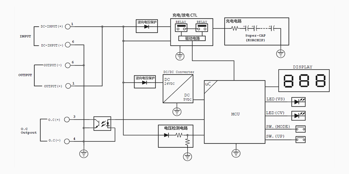 通过在一定时间(0.5 至 5.0 秒)内提供在内部 ELDC(SUPERCAP)中存储的DC电压来保