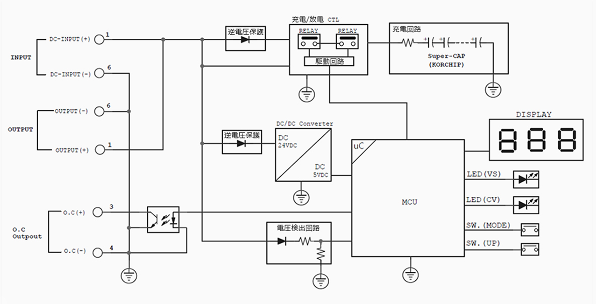 (SUPERCAP)に保存されたDC電圧を一定時間(0.5‐5.0sec)供給して自動化装備を保護し、